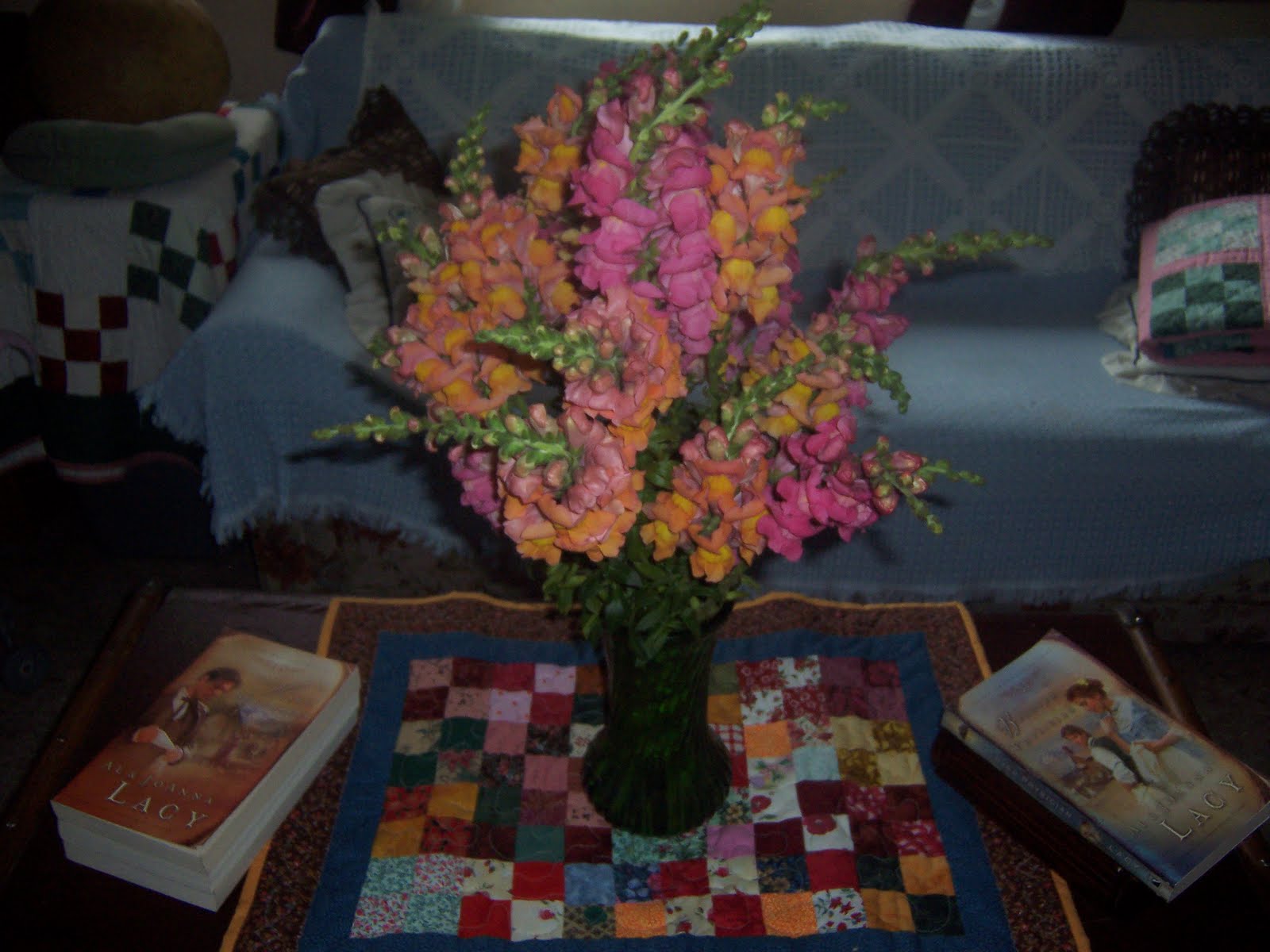 Mom has since made another one ,she says it is for me ,I told her she needs to make a new one for herself ,she has made everyone in the family a quilt or two except for herself .That gives me an idea but I cannot do one by hand....... HUMmmmmm,I'll think of something .....